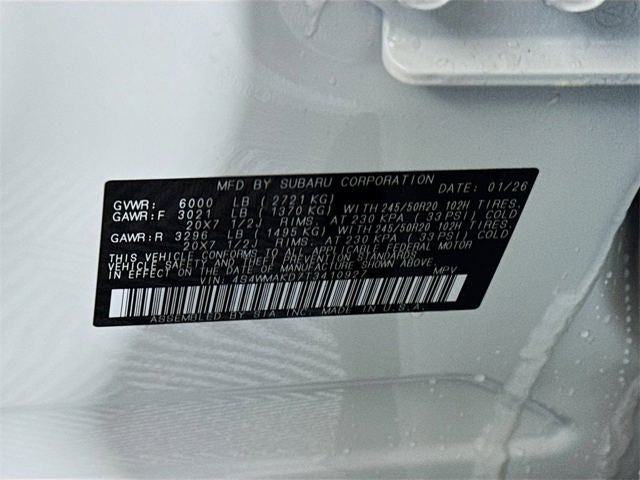 - Wheels: 20" x 7.5 J Dk Gray Alloy w/Machine Finish -inc: black wheel center cap w/Subaru 6 star logo
