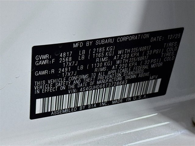 - Radio: Subaru 11.6" Multimedia Plus System -inc: AM/FM stereo, HD Radio, multi-touch gesture high resolution display screen, voice activated controls, Bluetooth® audio streaming and hands-free phone connectivity, Bluetooth® hands-free SMS text messaging connectivity, iPod control capability, smartphone integration: wired and wireless Android Auto w/full screen view and wireless Apple CarPlay w/full screen view, USB and Over The Air (OTA) audio system update, steering wheel audio system and Bluetooth® control switches, 6 speakers (2 dash panel tweeter, 2 front door and 2 rear door), illuminated 3.5mm auxiliary input jack, illuminated front USB A and C input/charge ports, connected services operation indicator, SOS emergency assistance: red SOS button and enhanced roadside assistance: blue i-button