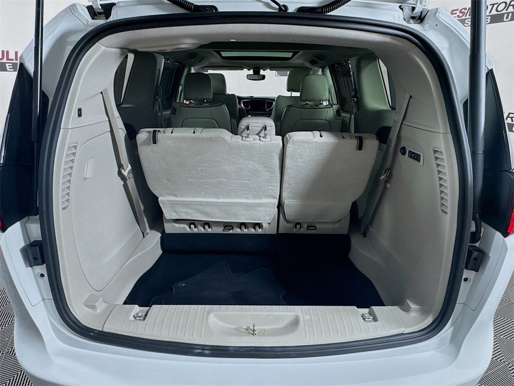 13 Speakers, 18 x 7.5 Painted Aluminum Wheels, 220 Amp Alternator, 3.25 Axle Ratio, 3rd row seats: split-bench, Alloy Seats, Apple CarPlay/Android Auto, Driver's Seat Mounted Armrest, Front fog lights, Fully automatic headlights, Heated front seats, Heated rear seats, Heated steering wheel, High-Intensity Discharge Headlights, Inflatable Spare Tire Kit w/Sealant, Leather steering wheel, Memory seat, Navigation System, ParkView Rear Back-Up Camera, Power driver seat, Power Liftgate, Power moonroof, Power passenger seat, Premium Leather Trim Bucket Seats, Quick Order Package 27P, Radio: Uconnect 4C Nav w/8.4 Display, Reclining 3rd row seat, Split folding rear seat, Spoiler, Steering wheel mounted audio controls, Touring Suspension, Turn signal indicator mirrors, Vacuum Delete, Ventilated front seats.