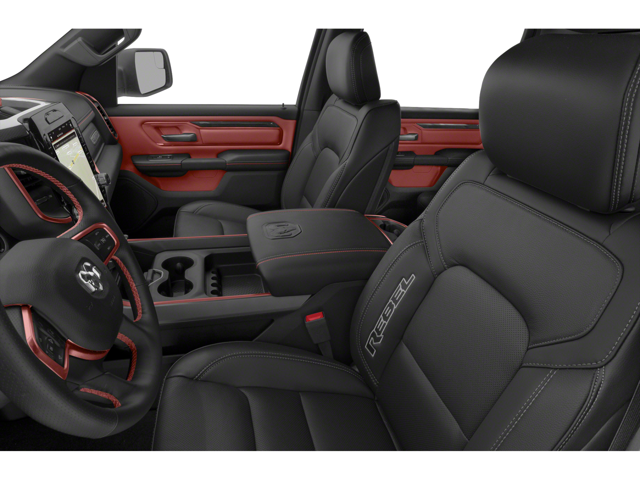 Stepping inside, the cabin of the Ram 1500 Rebel is a sanctuary of refined luxury and advanced technology. Sink into the premium leather-trimmed bucket seats, which offer heating and power adjustability for exceptional comfort. The available dual-pane panoramic sunroof floods the interior with natural light, creating an airy, open-air atmosphere.