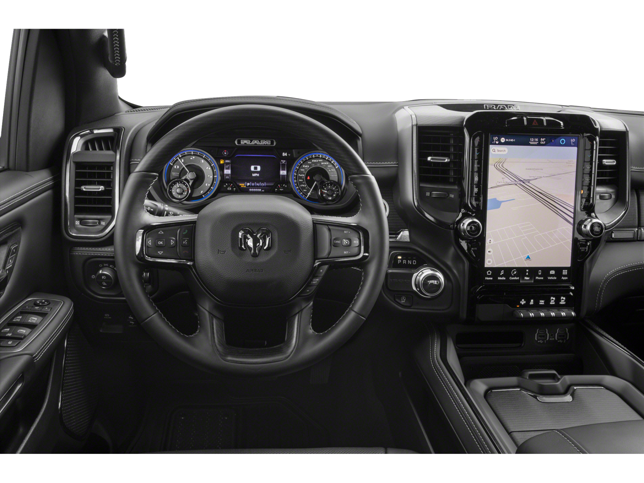 Climb inside and be enveloped in the luxurious cabin, featuring premium leather-trimmed bucket seats with heating and ventilation, a heated steering wheel, and a spacious 60/40 split-folding rear bench. The Uconnect 5 Nav system with a massive 12-inch display keeps you connected and entertained, while the advanced safety technologies, including Adaptive Cruise Control and Blind Spot Monitoring, provide added peace of mind on the road.