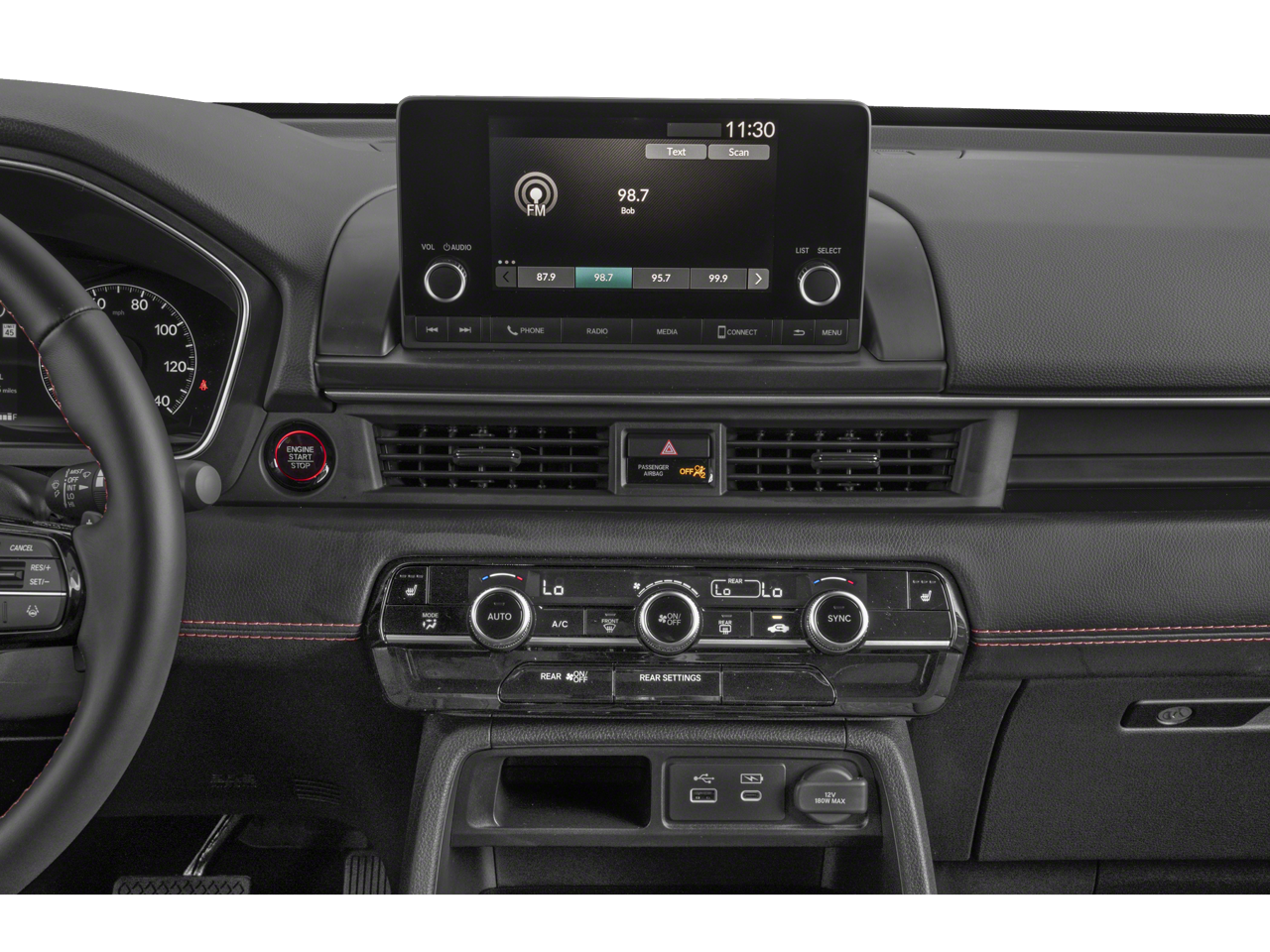 - Radio: 240-Watt Audio System -inc: 7 speakers w/subwoofer, 7" color touchscreen, Bluetooth® HandsFreeLink and streaming audio, Radio Data System (RDS), Speed-sensitive Volume Compensation (SVC), front 12-volt power outlet, Apple CarPlay and Android Auto compatibility, SMS text message function, 2.5-amp USB type-A smartphone/audio interface port in front console and 3.0-amp USB type-C charging port in front console