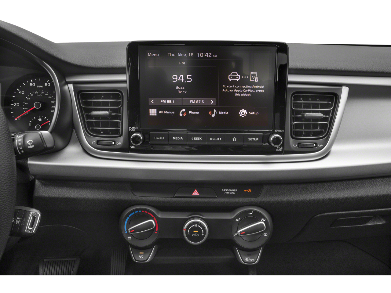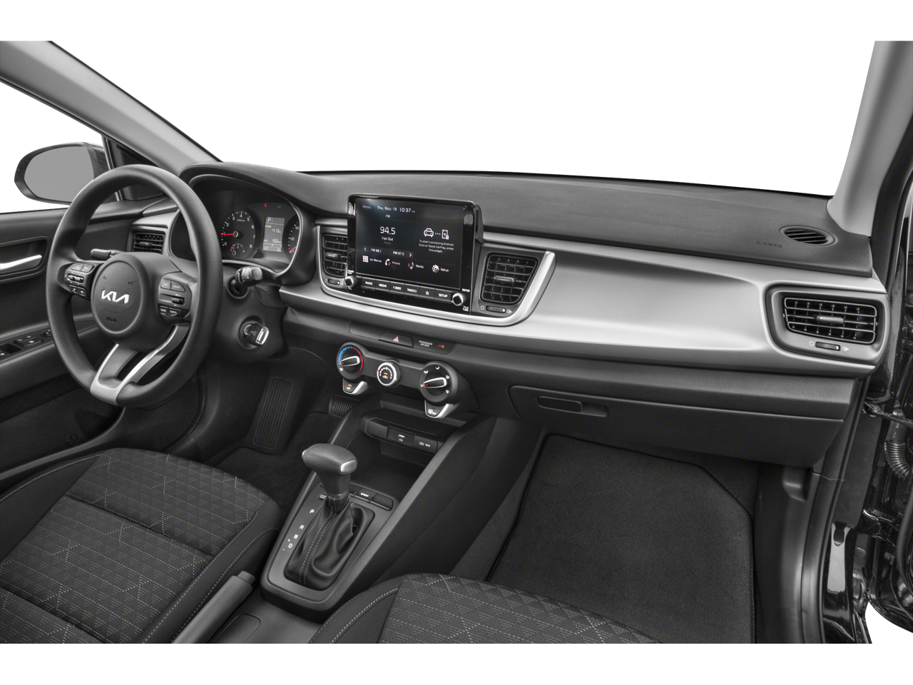 Black w/Woven & Tricot Cloth Seat Trim, 15 x 5.5J Alloy Wheels, Automatic Temperature Control, Chrome Door Handles, Forward Collision Avoidance Assist, Front Bucket Seats, Fully automatic headlights, Highline Tire Pressure Monitoring System (TPMS), Kia Connect eServices, LED Headlights, LED Positioning Lights, Push Button Start w/Immobilizer, Radio: AM/FM/MP3 Audio System, Rear Disc Brakes, Rear Occupant Alert, SiriusXM Satellite Radio, Split folding rear seat, Steering wheel mounted audio controls, Supervision Meter Cluster, Technology Package, Wheels: 15 x 5.5J Steel w/Full Covers, Woven & Tricot Cloth Seat Trim.
