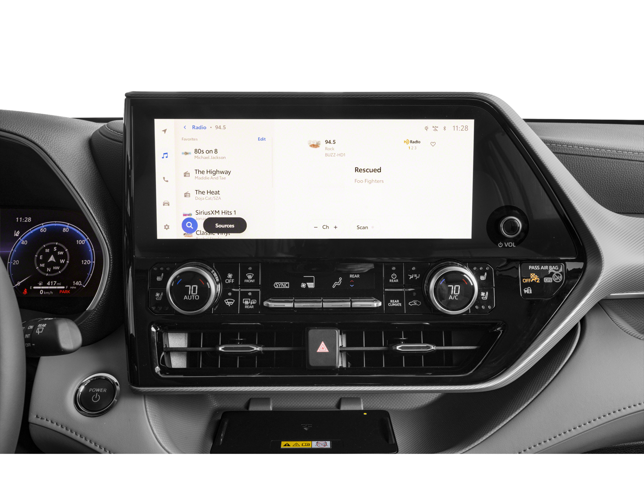 Step inside the Highlander Hybrid Platinum and be captivated by the premium leather seating, heated and ventilated front seats, and a panoramic moonroof that floods the cabin with natural light. The 12.3-inch Toyota Audio Multimedia system with JBL Premium audio provides an immersive entertainment experience, while the Heads-Up Display and Digital Rearview Mirror keep you informed and aware.